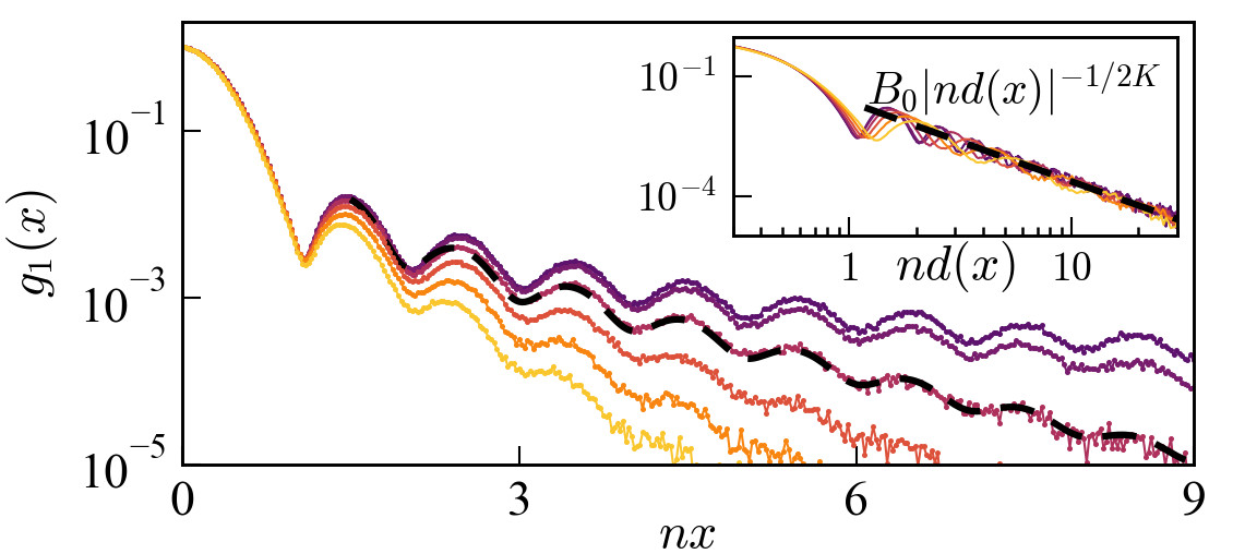 Abstract: The one-dimensional hard-rod model describes impenetrable bosons with finite diameter, extending the Lieb-Liniger model to systems with excluded volume interactions. Here, we investigate the thermodynamics of quantum hard rods using Yang-Yang theory, path integral quantum Monte Carlo calculations, and Tomonaga-Luttinger liquid theory. We first discuss the behavior of characteristic thermodynamic quantities, exhibiting deviations to the Lieb-Liniger model for sufficiently high densities, with excellent agreement between analytical and numerical results. We then show that the hard-rod model exhibits Tomonaga-Luttinger liquid behavior across a wide range of parameters, at zero and finite temperature, as unveiled by correlation functions. The Luttinger parameter and thermal length can be extracted by fitting correlation functions to Tomonaga-Luttinger liquid theory, hence demonstrating a robust method for thermometry. This work provides a comprehensive study of strongly correlated hard-rod systems at finite temperatures, with applications to quantum wires, spin chains, and ultracold atoms.